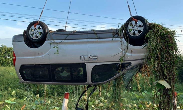 Nửa đêm 5/11, một chiếc ô tô 9 người do 9 tài xế người Campuchia điều khiển chở 11 người Việt Nam lưu thông trên Quốc lộ 6. Chiếc xe xuất phát từ xã Spien Snet, huyện Chikren, tỉnh Siem Reap, đâm vào một con kênh ngập nước và bị lật.