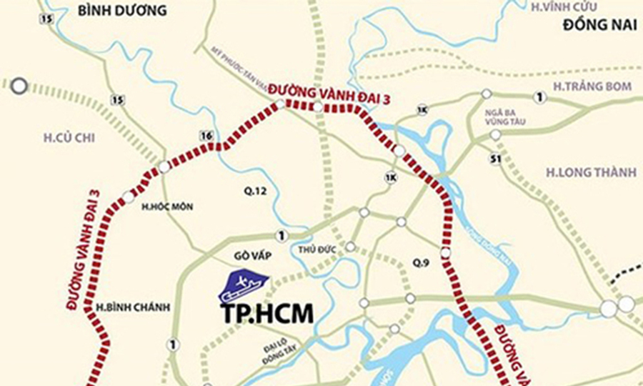 Dự án Vành đai 3 TP HCM có tổng chiều dài hơn 90 km được chia thành 4 phần: Tân Vạn-Bình Chuẩn, Tân Vạn -Nhơn Trạch, Bình Chuẩn-Quốc lộ 22 và Quốc lộ 22-Bến Lức. Trong đó, đoạn đường Tân Vạn-Bình Chuẩn (một phần đường Mỹ Phước-Tân Vạn, tỉnh Bình Dương) dài 16 km đã hoàn thành và đưa vào sử dụng.