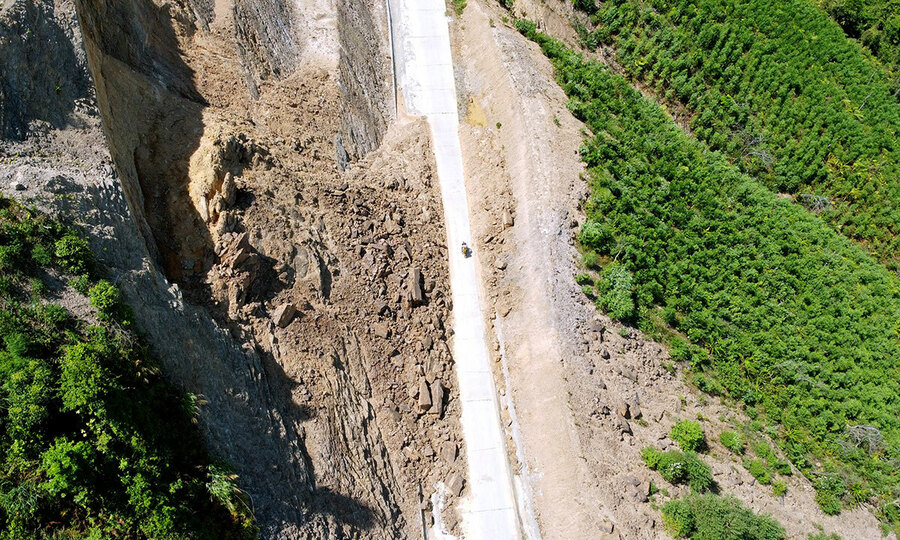 Điểm xói mòn lớn nhất nằm ở xã Xianglin, dài khoảng 300 m. Nhiếp ảnh: Duke Hong – Trên thực tế, mọi người chỉ được hưởng lợi từ sự thuận tiện của con đường trong một thời gian ngắn. Vào tháng 9 năm 2019, lũ lụt đã xảy ra ở khu vực sông Hoàng Hà, gây ra lũ lụt cho hàng ngàn ngôi nhà. Do mưa lớn, nước từ trên núi văng vào các mái nhà nông ở hai bên đường công cộng Phúc Trạch-Hương Liên, gây sạt lở đất đá. Theo thống kê, có 23 điểm sạt lở có kích thước khác nhau cách đó gần 10 km, nhiều điểm trong số đó kéo dài vài trăm mét.