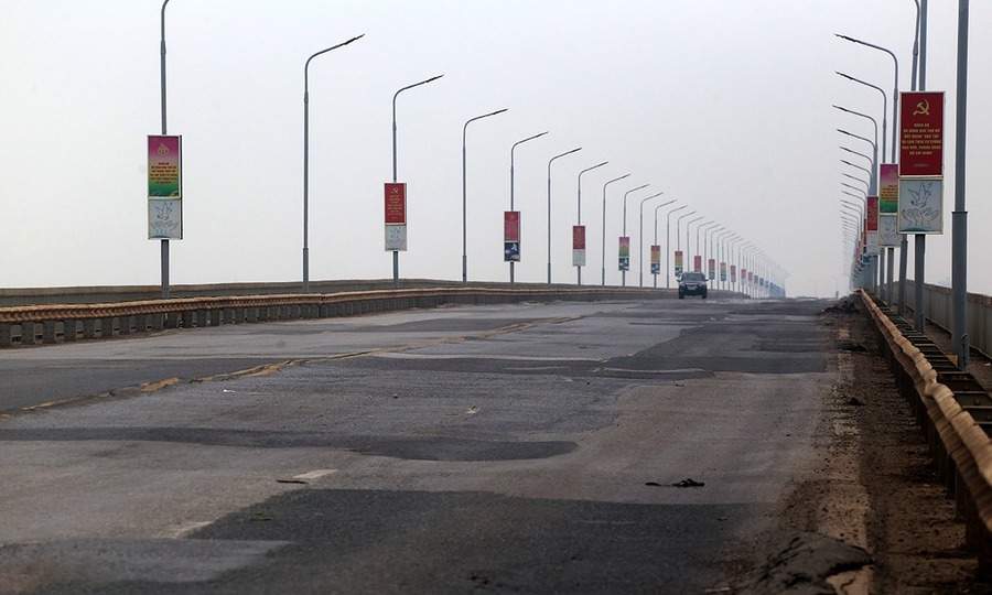 Qua sông Hồng. Cầu Tang Chang, tượng trưng cho tình hữu nghị giữa Việt Nam và Liên Xô, được các chuyên gia Nga thiết kế và xây dựng vào năm 1974 và hoàn thành vào cuối năm 1985. Sau hơn 20 năm sử dụng, cây cầu đã ngừng hoạt động nhiều lần. Nó đã được sửa chữa hàng chục lần, tiêu tốn hàng trăm tỷ đô la. Trong lần sửa chữa tiếp theo, bề mặt sàn composite nhẹ sẽ được sử dụng để gia cố cầu Shenglong hiện tại chạm tới bề mặt của cây cầu thép, cạo lớp bê tông nhựa hiện có và làm sạch bề mặt tấm thép , Hàn neo thép vào bề mặt của tấm thép, sau đó lắp đặt lưới thép D10. Hình cầu được gia cố bằng một lớp bê tông hiệu suất cao chịu nén, dày 6 cm và dài 4 cm, các khớp nối mở rộng bị hư hỏng được thay thế bằng các khớp nối mở rộng mô-đun.