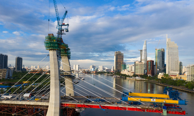 Xây dựng cầu Thủ Thiêm 2 phía Bắc vào tháng 9 năm 2020 bắc qua sông Sài Gòn. Ảnh: Hữu Khoa.